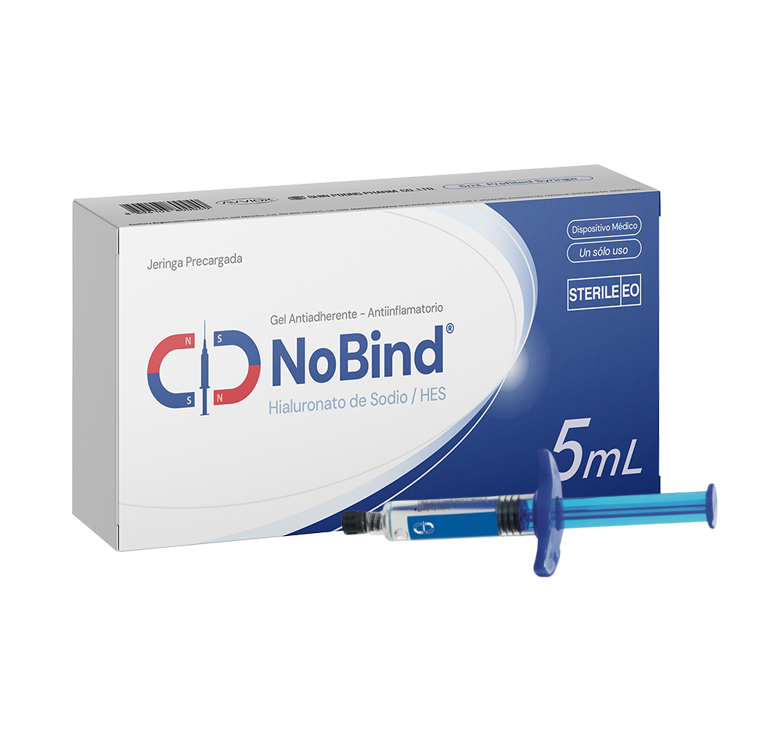 Nobind es un gel bioactivo con fórmula dual patentada con propiedades antiinflamatorias y antiadherentes que protege, modula y previene las adherencias quirúrgicas permitiendo una recuperación sin ataduras.